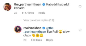 This hilarious conversation of Hina Khan and Parth Samthaan on Instagram is surely major friendship goals for many of us.