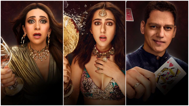 Netflix is on a movie announcement spree and has been releasing news posters and teasers of upcoming moves and series. Speaking of which, we just came across the intriguing posters of Murder Mubarak starring Sara Ali Khan, Karima Kapoor, Vijay Varma, Pankaj Tripathi, Dimple Kapadia, Sanjay Kapoor and others. Going by their looks, everyone looks like a suspect and they will leave you puzzled about who is the murderer. The posters look like they are the Hindi version of Knives Out but it is based on the novel “Club You To Death” by Anuja Chauhan.