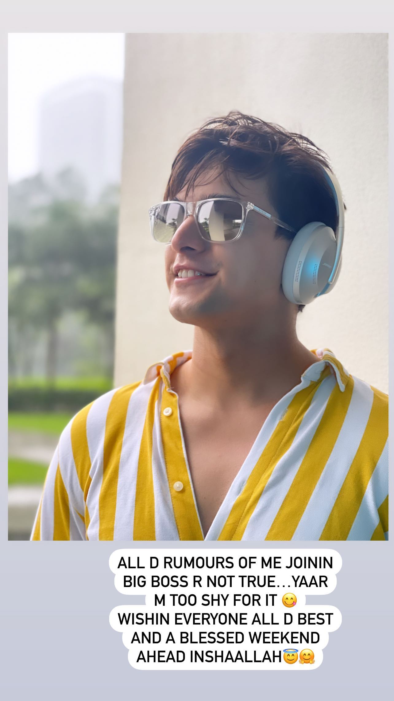 Mohsin wrote, “All the rumours of me joining Bigg Boss are not true…Yaar I am too shy for it. Wishing everyone all the best and a blessed weekend ahead. Inshaallah.”