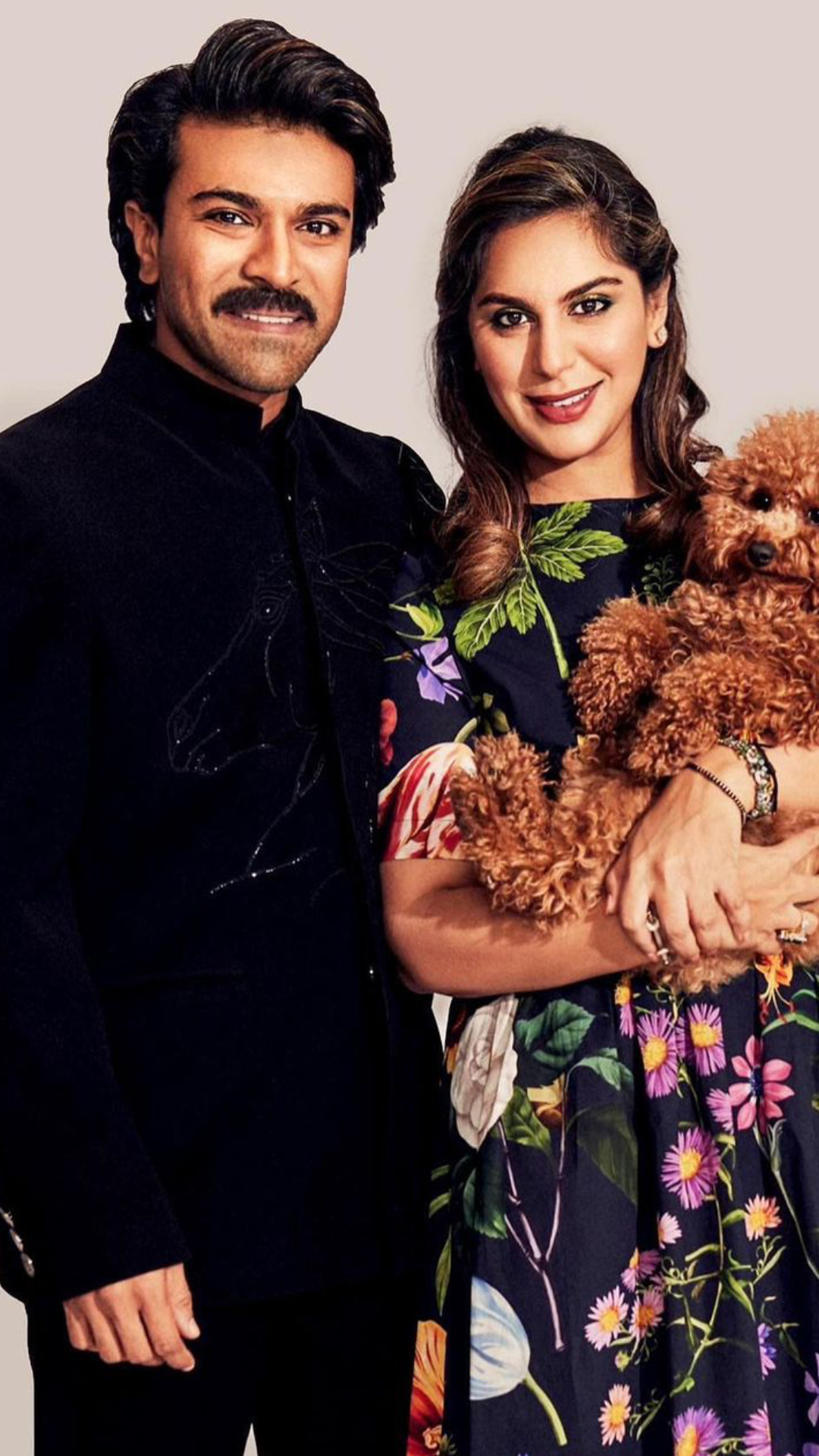 Upasana Kamineni Konidela radiates pregnancy glow in a blue ensemble while Ram Charan looked dapper in an all-black