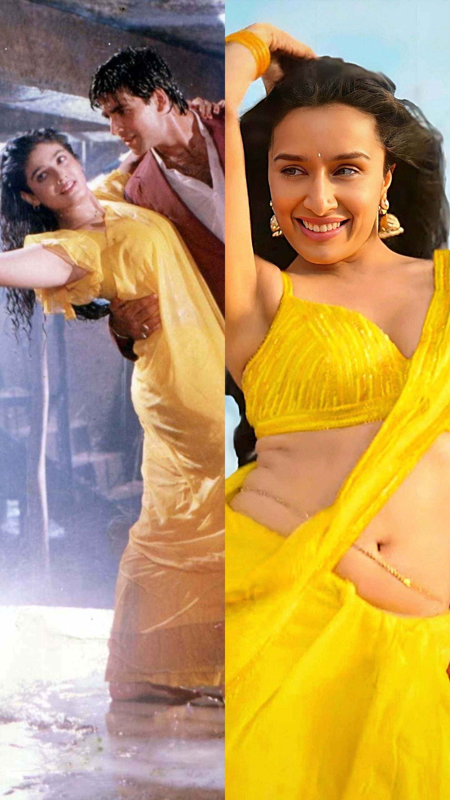 Raveena Tandon Raveena's yellow saree look in Tip Tip Barsa Paani song from Mohra with Akshay Kumar became the symbol of sensuality.
